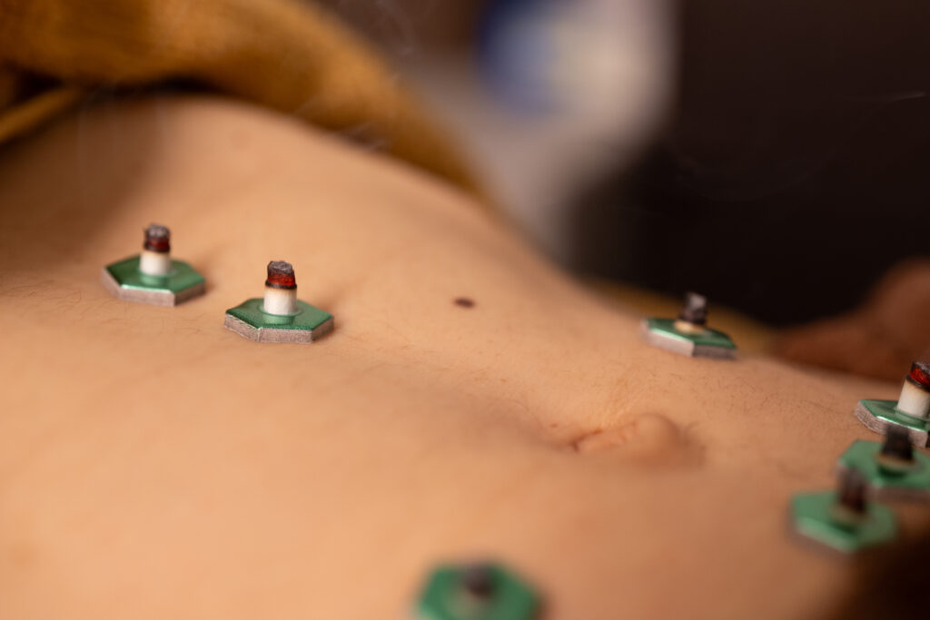 耳の後ろから鎖骨にかけて伸びている太い筋肉、これが胸鎖乳突筋です。ここには頭への主要な血管(頸動脈)が通っています。スマホ首の人はここがガチガチに縮こまっています。
