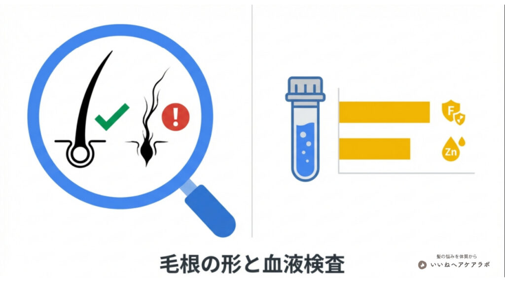 - ● 毛根が黒い、または極端に細い場合は異常のサイン