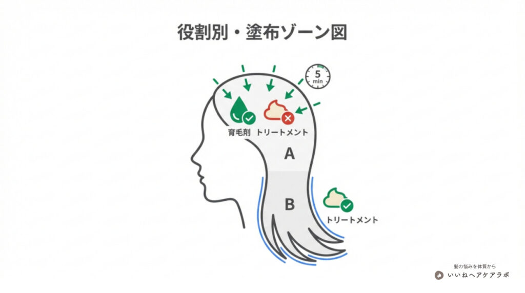 役割が全く異なるこれらを混同して使用すると、せっかく綺麗に洗った毛穴を再び油で埋めてしまうことになります。ここでは、トリートメントの正しい役割と、頭皮を守るための絶対的なルールについて解説します。