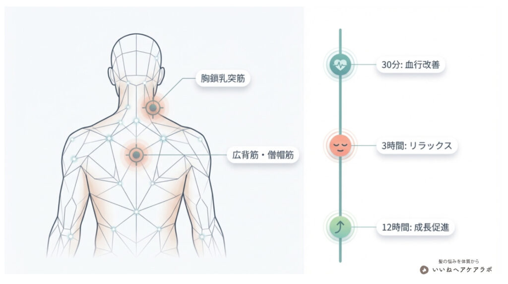 これは、薬のような化学的なアプローチではなく、人間が本来持っている恒常性(ホメオスタシス)を利用した最強の血流改善法です。翌朝の頭皮の柔らかさが、目に見えて変わるのを実感できるでしょう。